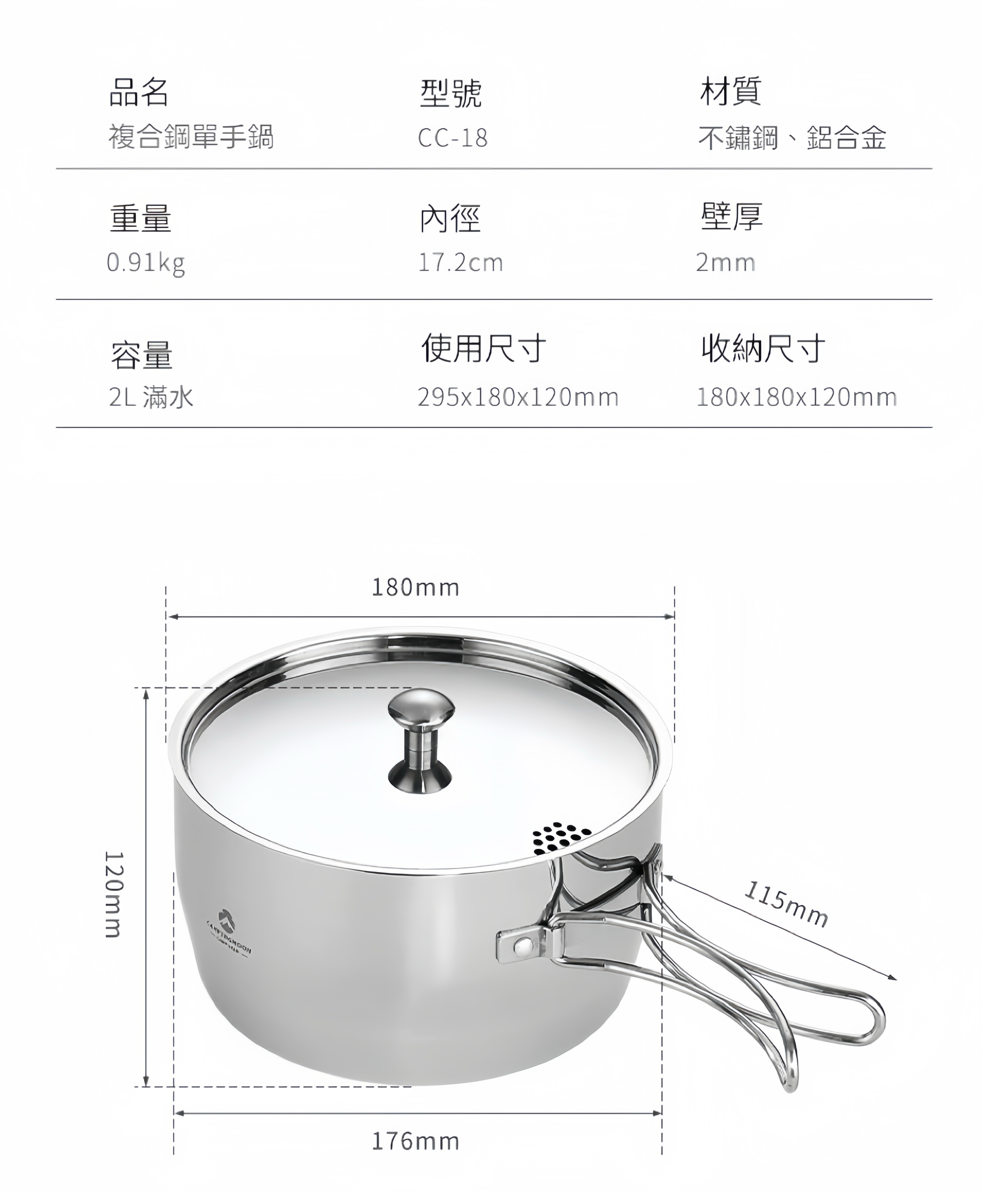 CC-18 加厚複合不鏽鋼露營湯鍋