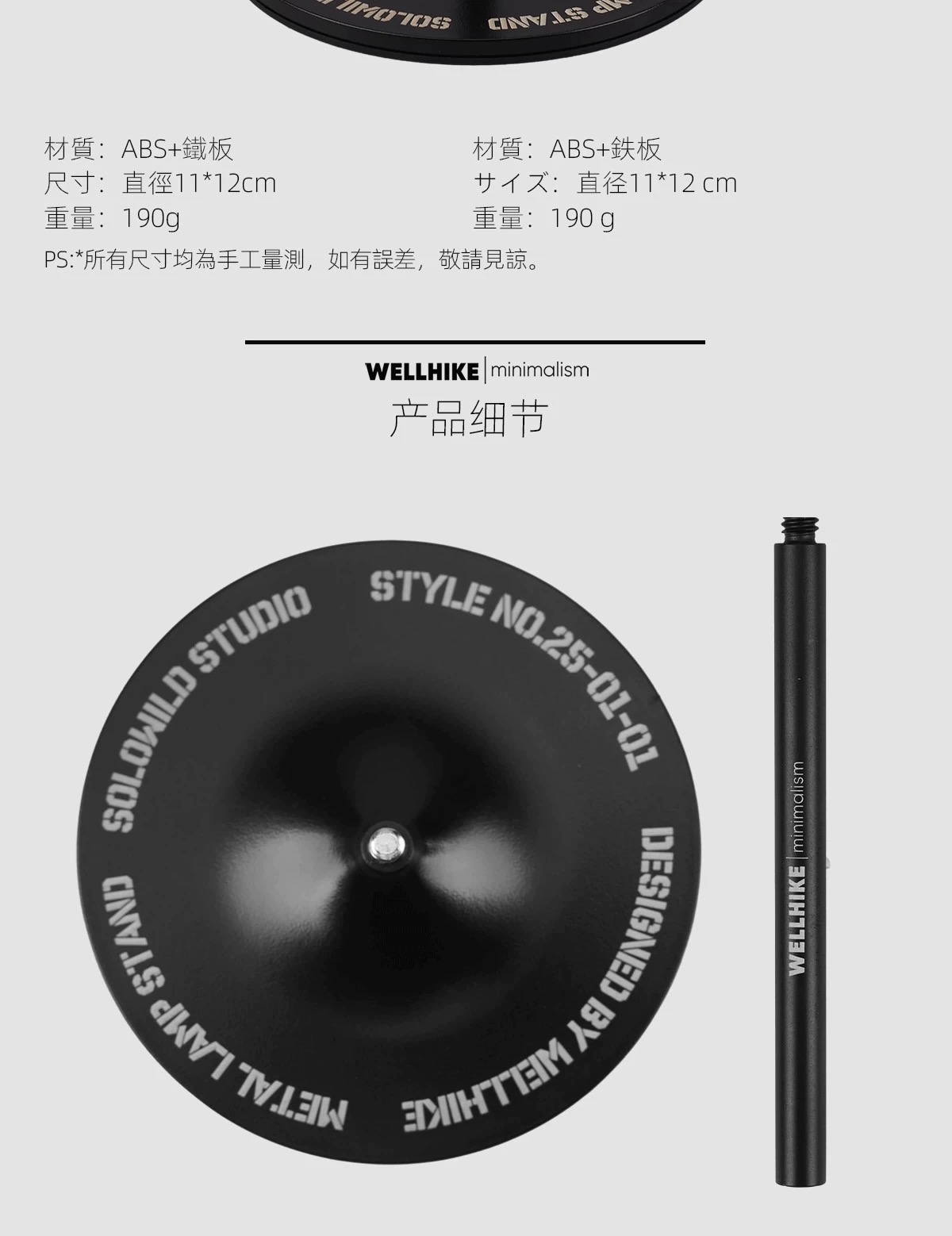 內容物:底座*1、燈桿*2節、1/4轉接螺絲*1
